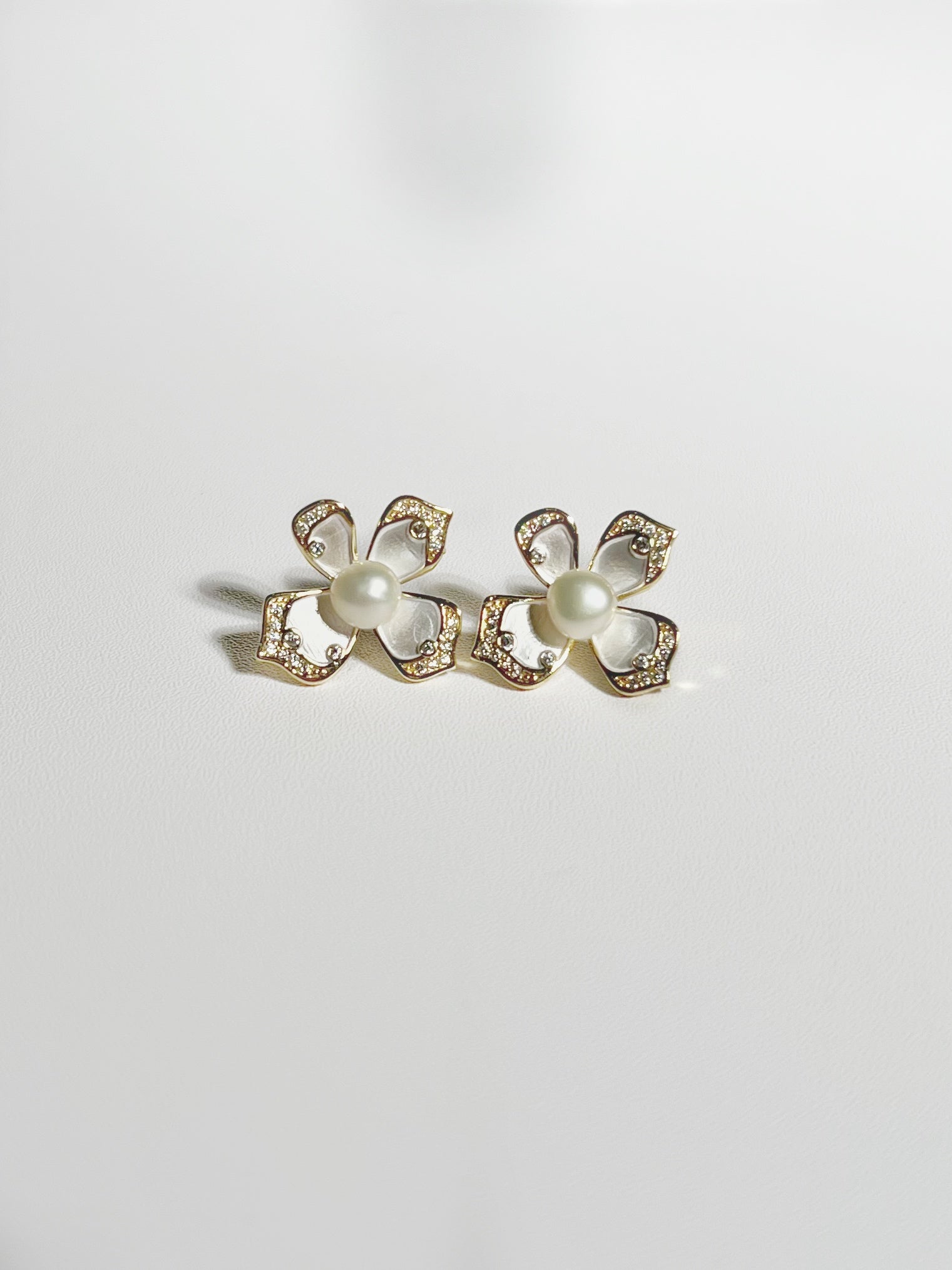 Discover refined charm with these freshwater pearl stud earrings, delicately framed by four elegant petals. Crafted in stainless steel and enhanced with gold plating, they offer lasting shine and sophistication for any occasion.