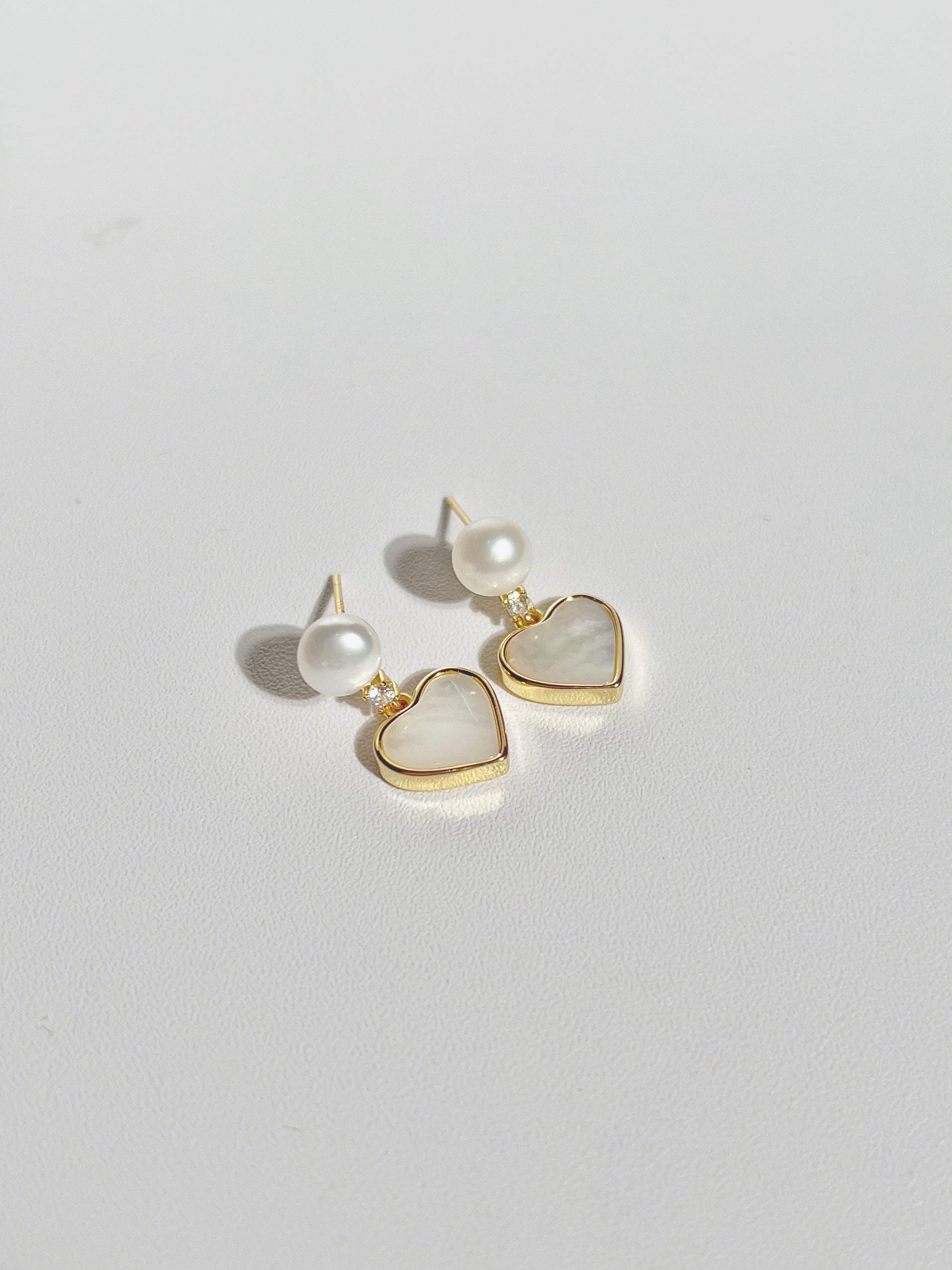 These dangle pearl earrings showcase a graceful heart-shaped design crafted from smooth enamel, set in gold-plated stainless steel. Combining delicate artistry with durable materials, they bring a refined and timeless elegance to elevate your look for any occasion.